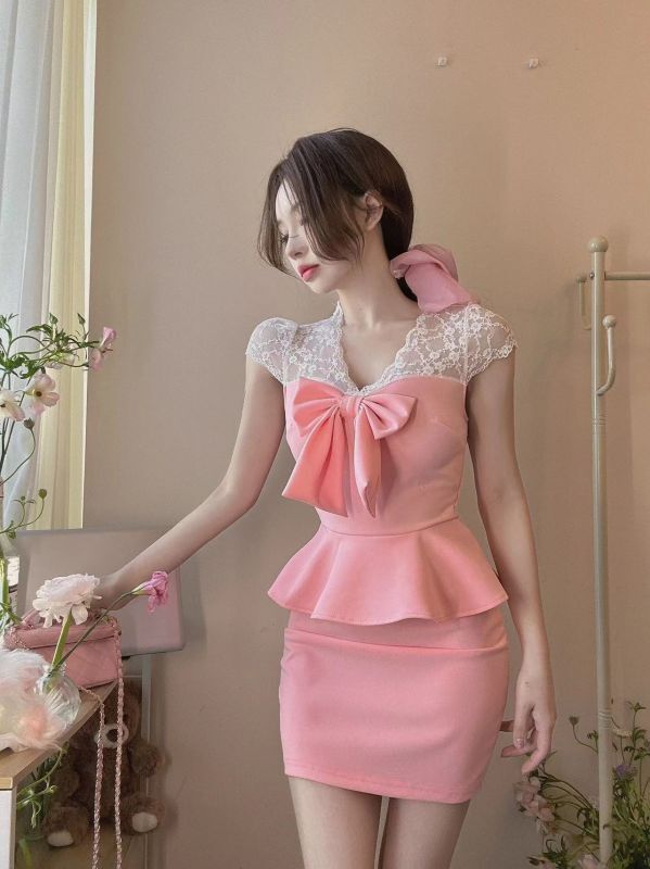 エレガントな胸元リボンデザイン ミニドレス キャバドレス【MARVELOUS QUEEN】