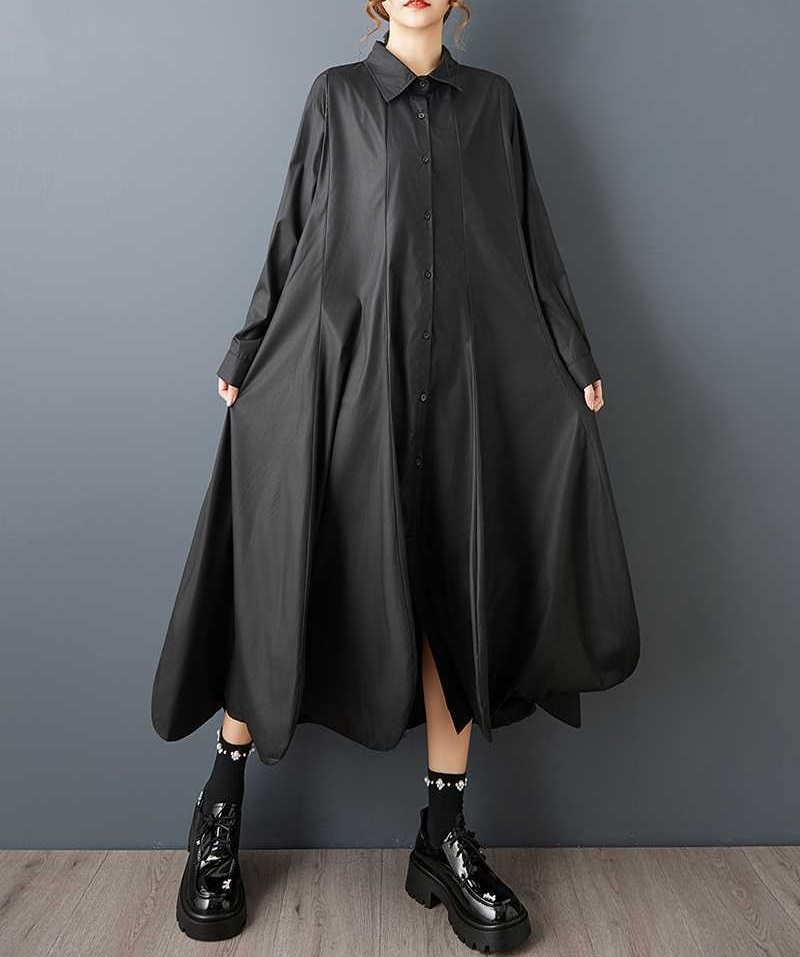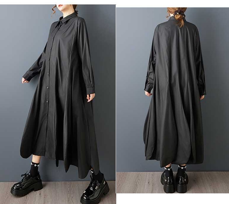 個性派スタイル オシャレな脚部メッシュレースデザイン チュニックシャツ長袖ワンピース【MARVELOUS QUEEN】