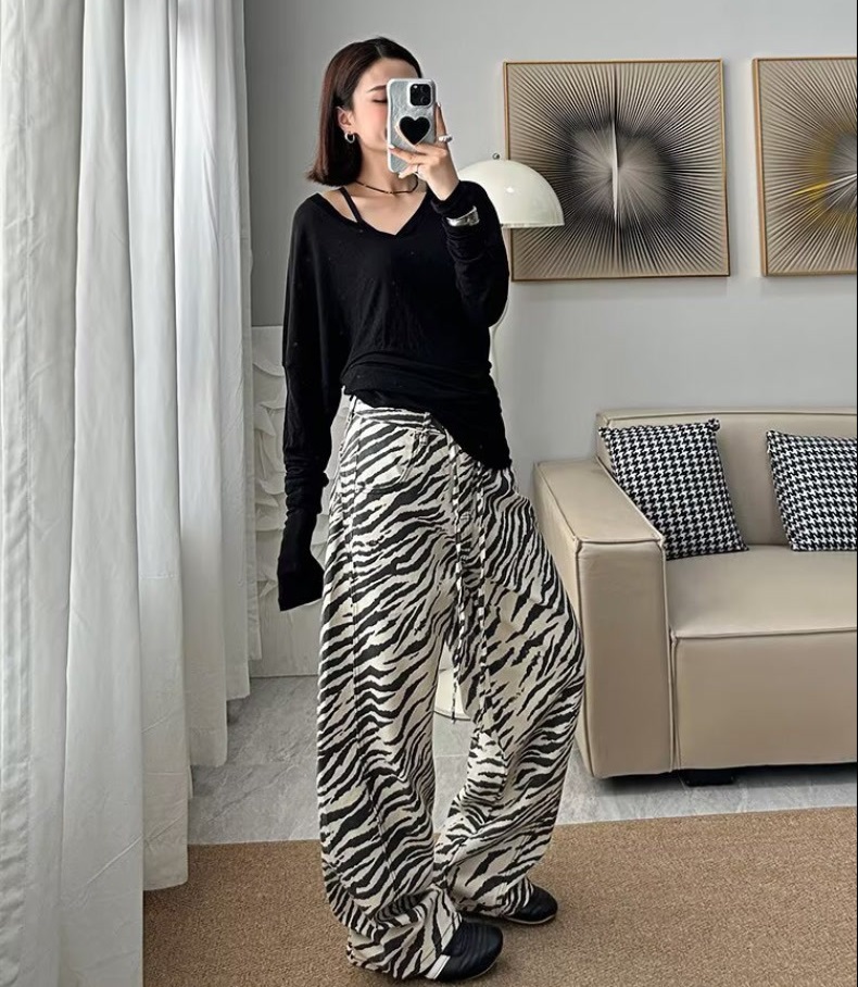 個性派必見!カジュアル ストリート系 ゼブラ柄デニムパンツ/パンツ/ボトム【MARVELOUS QUEEN】 [MA-W-0012886]